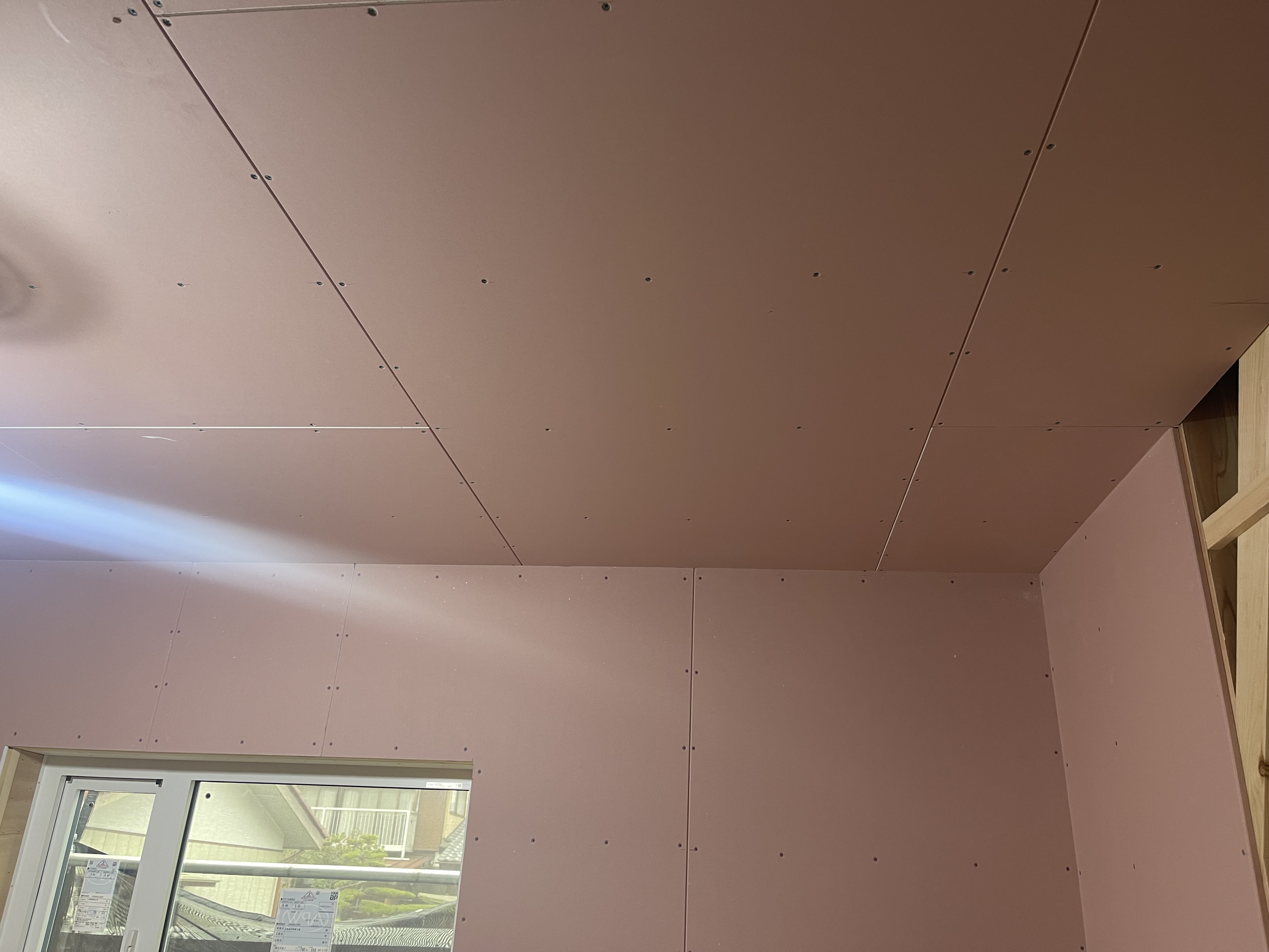 仕上げはクロスなどで仕上げるのが一般的ですが、下地の石膏ボードが丁寧に施工されていないと仕上げのクロスは綺麗に貼れません。