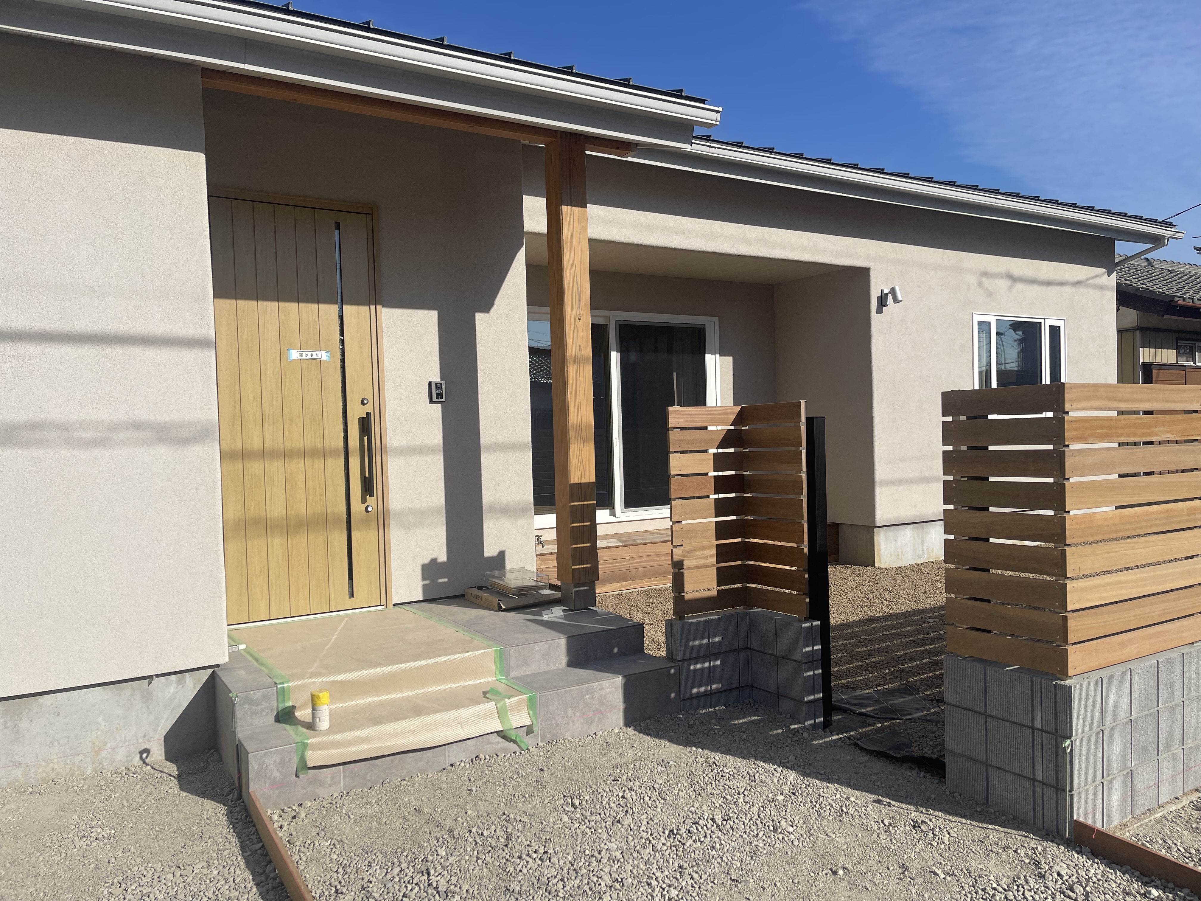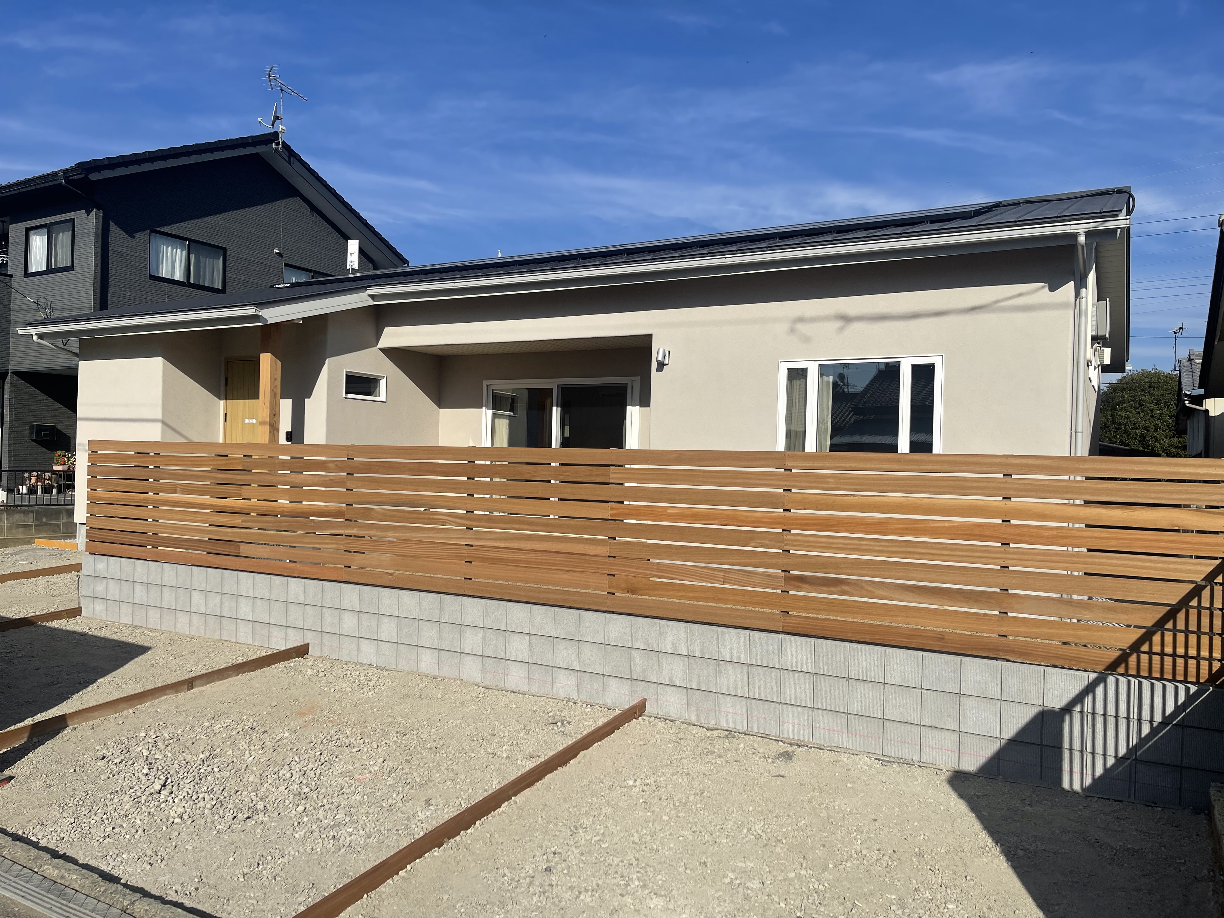 このデッキ材と同じ板を外構のフェンスにも採用しました
