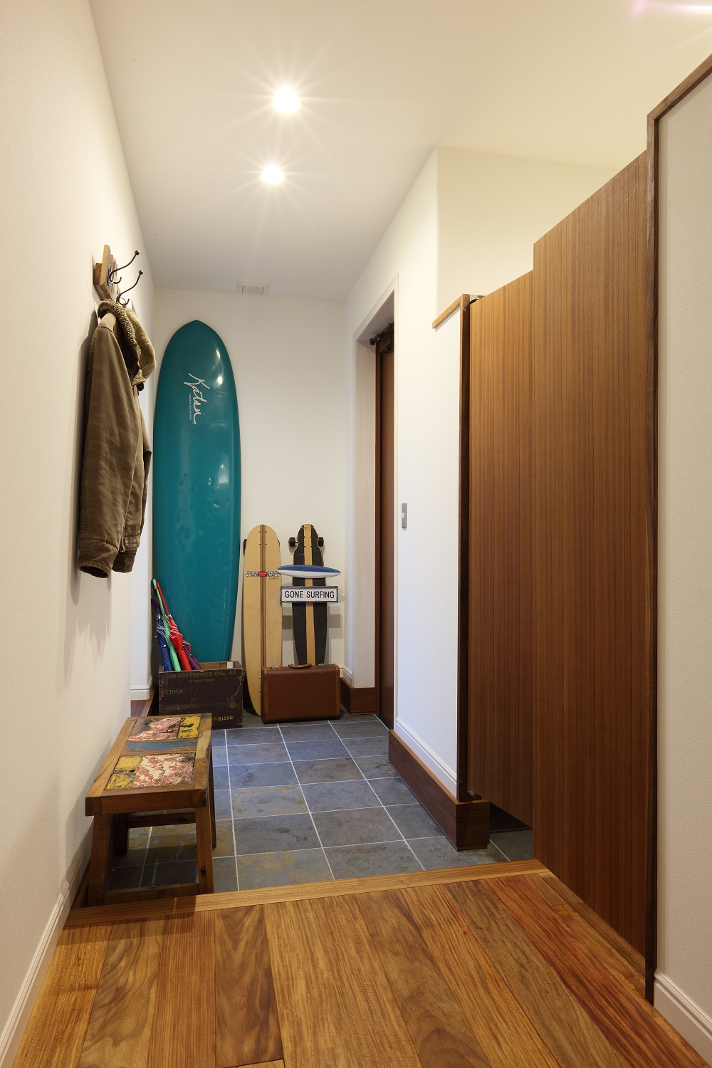 ダイニングの反対側は玄関へつながる廊下になっており玄関ホールとの境やドアもないので、開放感があります。