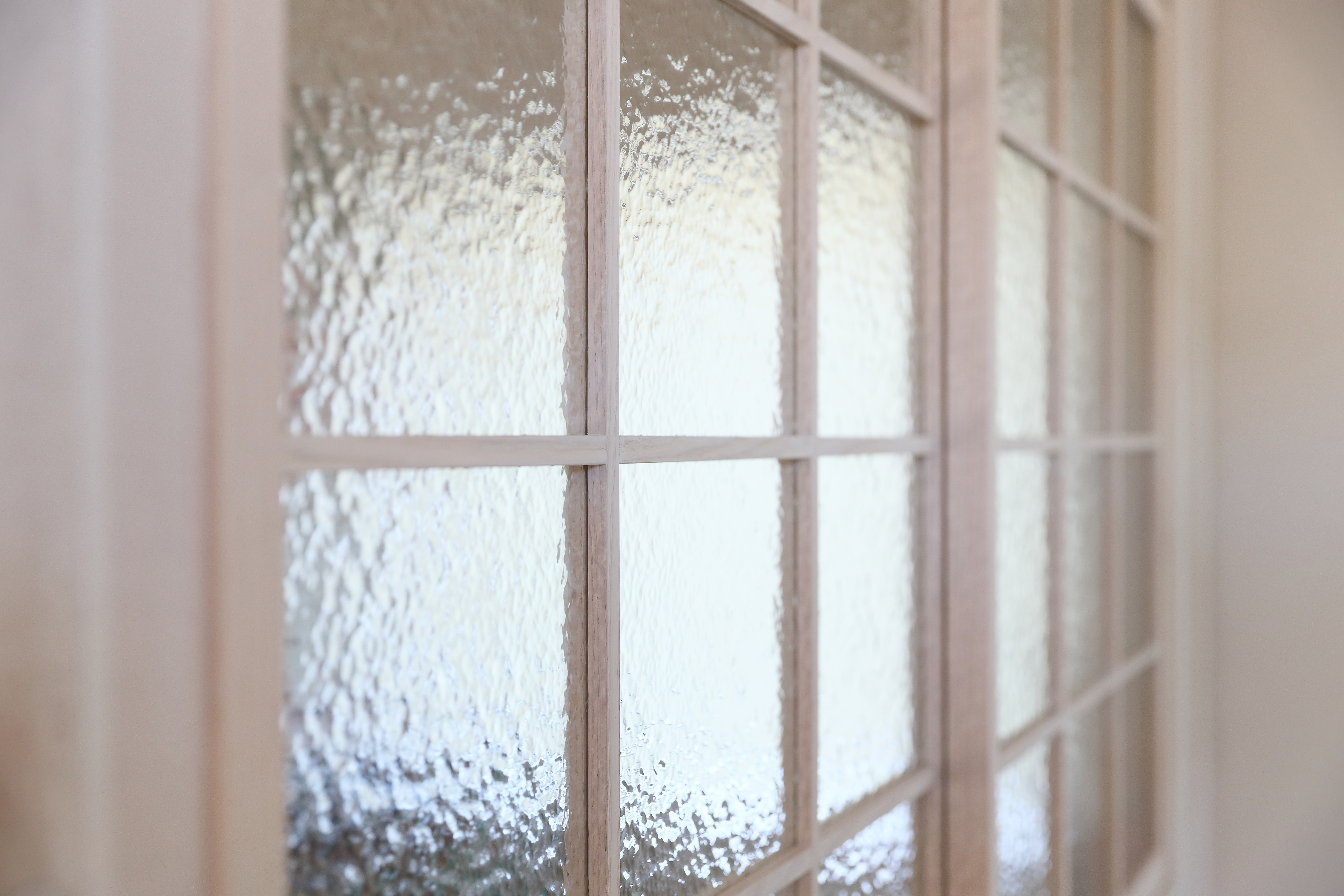 ゆず肌のような質感があり、目隠ししつつ光を取り入れ出来ます。