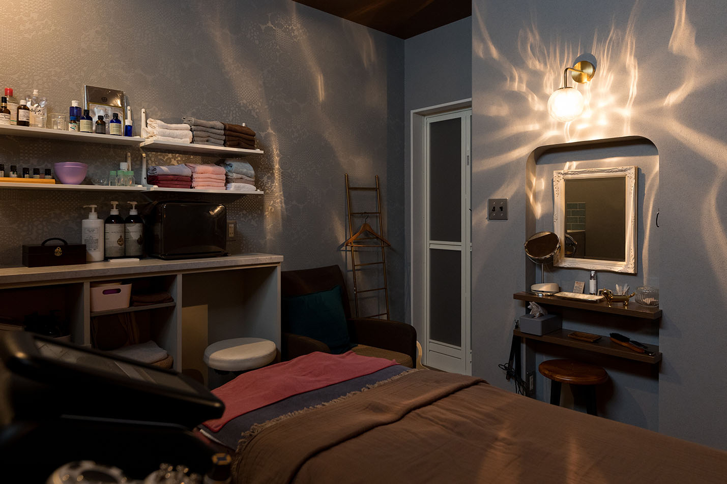 施術室は異なるコンセプトで内装をチョイスしたので、毎回訪れる度にどの部屋で施術してもらえるかワクワク感があります。