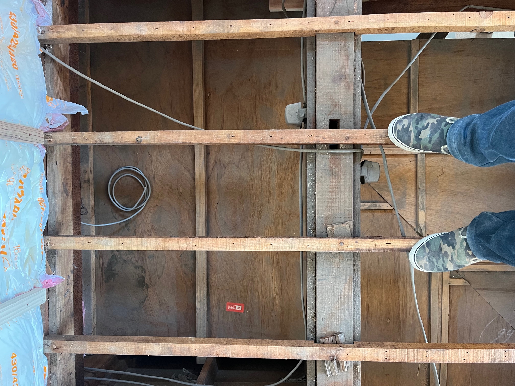 昨日は私も作業員として断熱材を入れたり、足場として使っていた床をバラシたりしてきました。