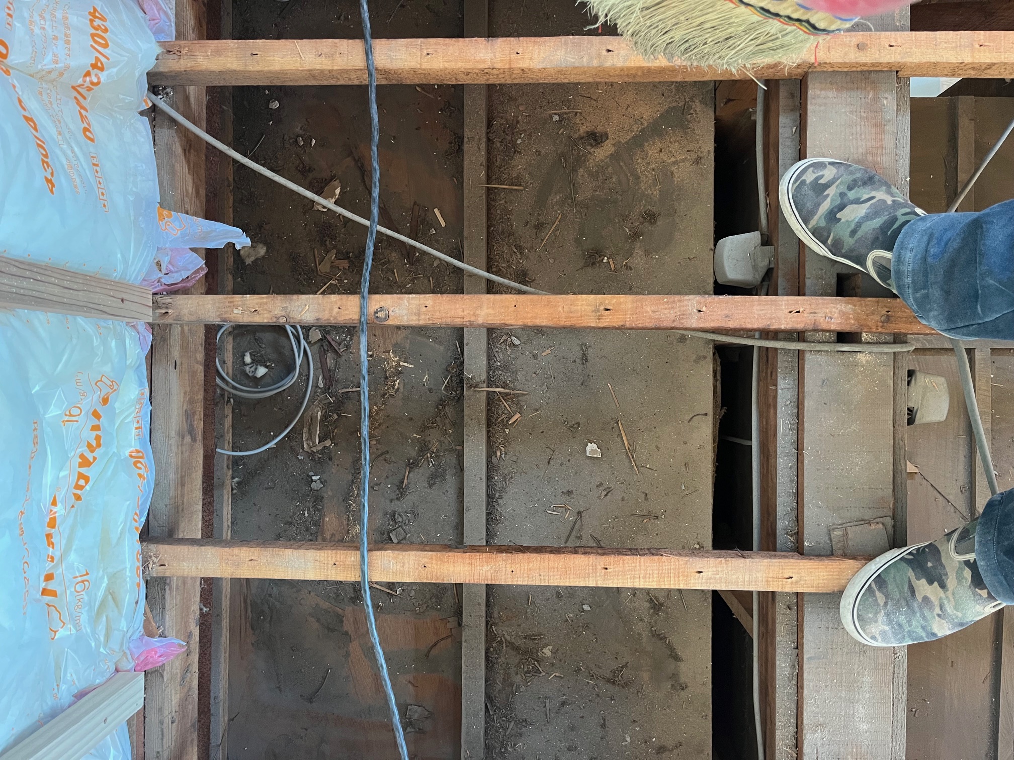 掃除と言っても根太(写真に写っている棒状の木)があり、下へ40センチほど下がっておりますので簡単ではありません。