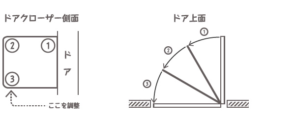 玄関ドアはドアクローザーによって開閉速度を調整しています。時々スピードが速くなって「バタン」と閉まったり、スピードが遅くドアが閉まらない事がありますので、「こんな時は」に対処法が記載されています。ご覧下さい。