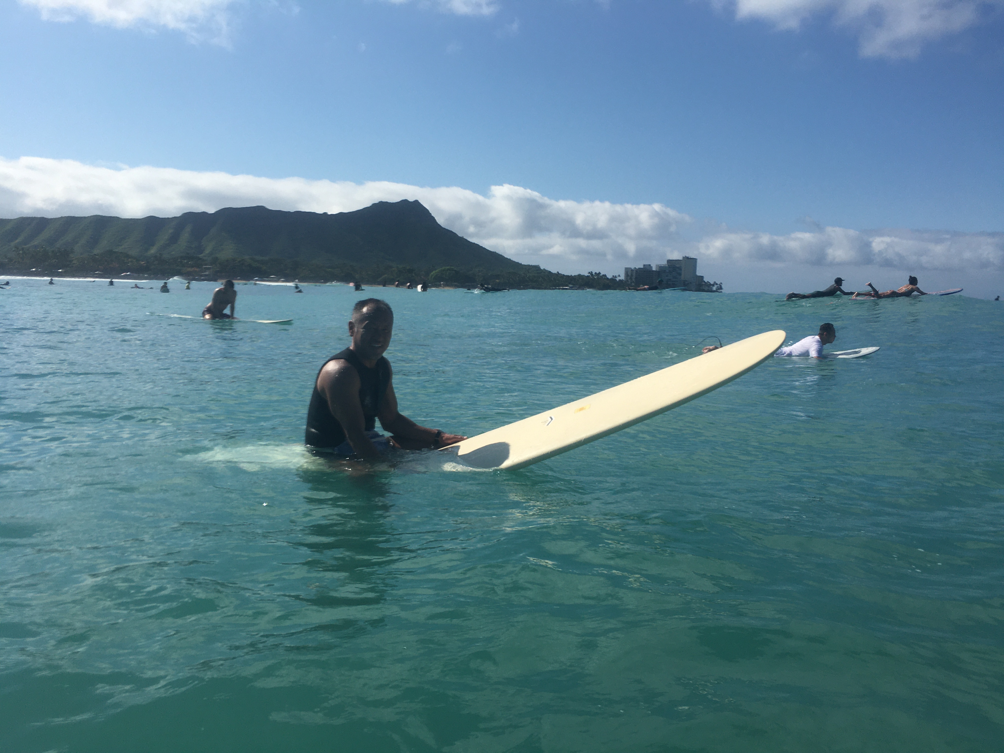 ここはワイキキビーチにあるカヌーズというサーフポイントです。
