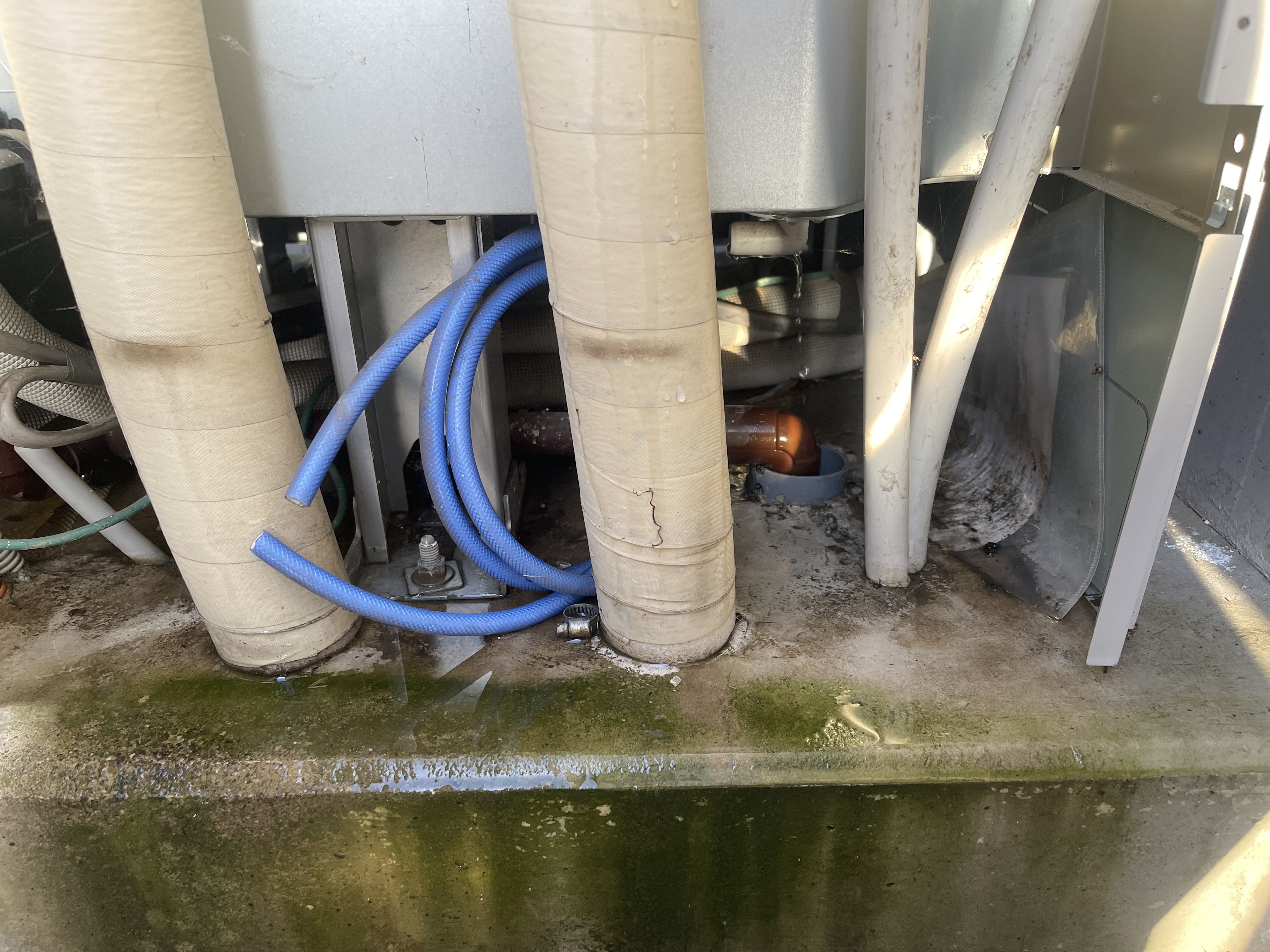 後日、漏水の原因は銅管の腐食による漏水で、サービスの方から「今回のようなケースは設置後10年前後に発生する事が多い」という話でした。