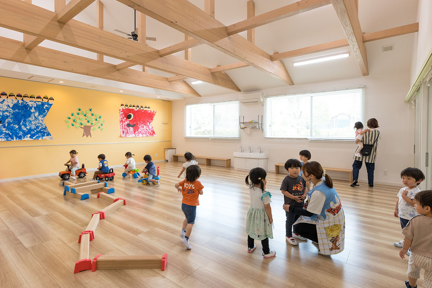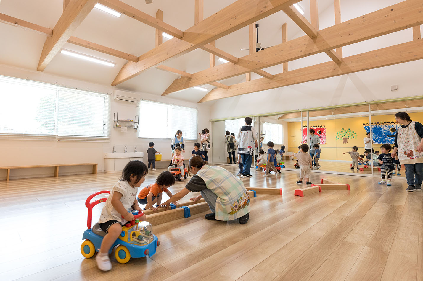 お父さん、お母さんと離れても子ども達が一番安心する家にいるような気持ちになれる園舎が完成しました。