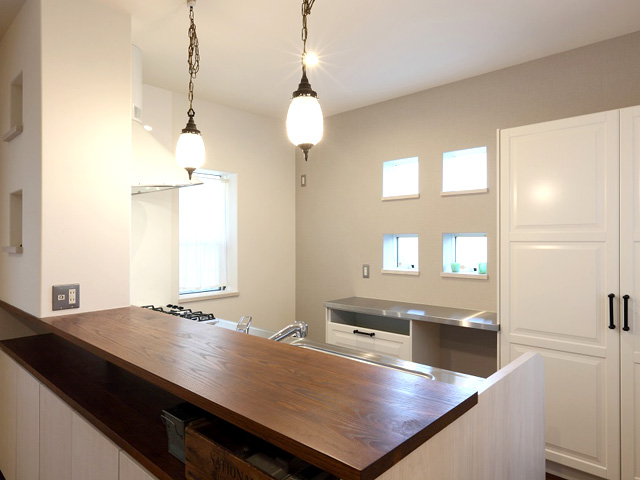 外観は当社定番の板張りの経年変化を楽しめる外壁材を使っています。 開放感のあるリビング階段の壁には当社オリジナルの木製アート壁を施工しています。 間取りは家事動線を考慮した回遊できる設計にしています。